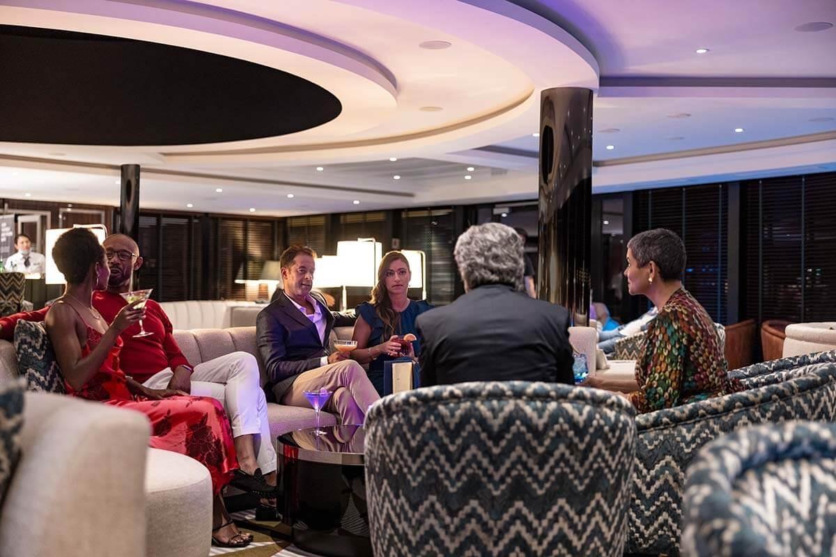 Relive the day’s adventures with like-spirited explorers as you stargaze with 270-degree and overhead views with drinks in hand. Enjoy a talented pianist and energetic Cruise Director as they put on a fun and entertaining show.